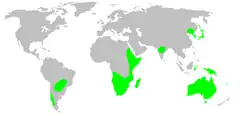 Les espèces de cette famille se rencontrent en Océanie, en Asie, en Afrique et en Amérique du Sud[1].