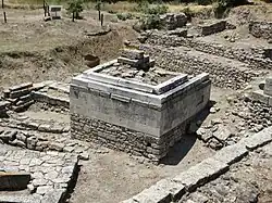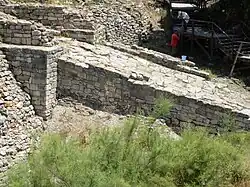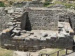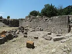 Reste des remparts de Troie VII (à gauche), identifiée comme la Troie homérique, vers