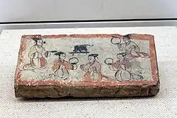 Du point de vue de la culture matérielle, quelques tombes des lignages de seigneurs de la guerre sont connues : celle de Cao Zhi, un prince de Wei, mise au jour à Yushan dans le Shandong[59], ou celle, à l'occupant inconnu (un autre membre du clan Cao ?), dégagée à Fancheng dans la préfecture de Xiangyang (Hubei)[60]. Elles ont livré un riche matériel funéraire témoignant du fait que ces familles ont acquis d'importantes richesses et repris les traditions funéraires des grandes familles princières de l'époque Han.