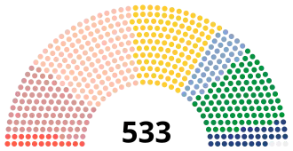 Le , l'Assemblée nouvellement élue est majoritairement monarchiste : sur 675 élus, environ 400 monarchistes (dont 182 légitimistes et 214 orléanistes), et 250 républicains avec une minorité de socialistes, comme Félix Pyat et Benoît Malon, et quelques bonapartistes issus de la Corse et de la Charente[16]. Les départements de l'Est, envahis, se sont largement prononcés pour les républicains et la guerre, tout comme le Midi de la France et Paris. Mais la majorité des Français, lassée de la guerre, a préféré voter pour les tenants de la paix, sans que ce vote signifie une adhésion à la cause monarchiste. André Encrevé écrit à ce sujet : « la majorité monarchiste va, d’une certaine façon, commettre la même erreur que Louis-Napoléon en 1851, c'est-à-dire confondre une circonstance exceptionnelle (ici l’invasion) avec une tendance profonde de l’opinion publique. Ces députés ont été élus parce qu’ils proposaient de signer la paix ; mais leur option majoritaire pour la monarchie n’est pas à l’unisson des préférences des Français »[17].