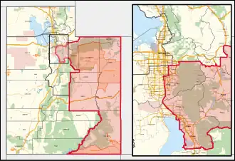 2023–Présent![]() Carbon, Daggett, Duchesne, Emery, Grand, Salt Lake, San Juan, Summit, Uintah, Utah et Wasatch | |||||