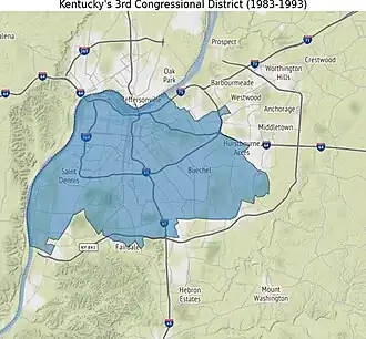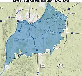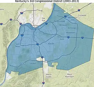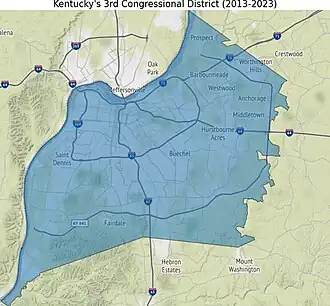 Le 3e district congressionnel du Kentucky est un district de l'État américain du Kentucky. Il englobe presque tout la région métropolitaine de Louisville, qui, depuis la fusion de 2003, est consolidé avec le Comté de Jefferson, bien que d'autres villes constituées existent dans le comté, telles que Shively et St. Matthews. L'extrême atteint l'air métropolitaine du métro de Louisville fait partie du 2e district congressionnel.
