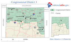 Le 3e district congressionnel du Nouveau-Mexique dessert la moitié nord du Nouveau-Mexique, y compris la capitale de l'État, Santa Fe. Le district a une présence amérindienne importante, englobant la majeure partie de la partie du Nouveau-Mexique de la Nation Navajo, située dans le coin nord-ouest de l'État, et la plupart des réserves des peuples Puebloans[1]. La Représentante actuelle est la Démocrate Teresa Leger Fernandez.