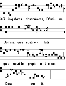 L'introït Si iniquitates est un assez bon exemple du troisième mode, bien que sa montée dans l'aigu tende à le rapprocher des logiques du septième mode. On voit bien sur l'intonation la montée du si au do, décelable au podatus d'accent à présent inversé, mais c'est le seul passage où la restitution de l'édition vaticane soit discutable. Pour les autres passages, le caractère statistiquement dominant du do par rapport au si est dans la nature même de ce type modal « B* », qui ne se pose sur la corde modale que rarement et après hésitation.