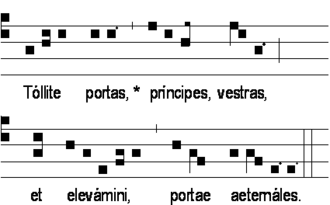 L'antienne ci-dessus est un exemple de structure modale où la deuxième teneur est située sur le la, de type BqA. L'édition vaticane la classe dans le troisième mode, mais cette structure modale est plutôt caractéristique du quatrième.