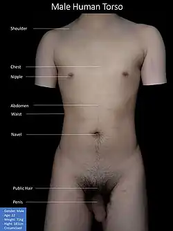 Le tronc est constitué de trois parties, le thorax, l'abdomen et le petit bassin. Les limites du tronc sont constituées par le cou et les épaules en haut, et par les hanches en bas. La limite entre le thorax et l'abdomen est matérialisée par le diaphragme. La limite entre l'abdomen et le petit bassin est matérialisée par le péritoine inférieur.