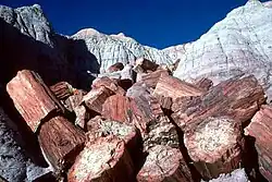 - des sections de troncs pétrifiés (entièrement minéralisés, sans restes organiques)