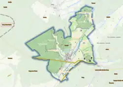 L'occupation des sols de la commune, telle qu'elle ressort de la base de données européenne d’occupation biophysique des sols Corine Land Cover (CLC), est marquée par l'importance des territoires agricoles (49,6 % en 2018), en augmentation par rapport à 1990 (47,4 %). La répartition détaillée en 2018 est la suivante : forêts (48,2 %), terres arables (29,7 %), prairies (16 %), cultures permanentes (4 %), zones urbanisées (2,1 %)[18]. L'évolution de l’occupation des sols de la commune et de ses infrastructures peut être observée sur les différentes représentations cartographiques du territoire : la carte de Cassini (XVIIIe siècle), la carte d'état-major (1820-1866) et les cartes ou photos aériennes de l'IGN pour la période actuelle (1950 à aujourd'hui)[Carte 2].