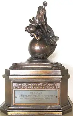 - 1934 : Capitaine A. F. Hegenberger de l'U.S. Army Air Corps pour le développement réussi d'un système d'atterrissage en aveugle