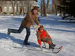La trottinette des neiges est un équipement de transport hivernal nordique mais aussi un sport de neige.
