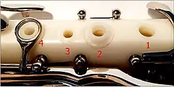 La portion de perce située entre deux trous ouverts est appelée « bout mort »[8] et peut entrer en résonance si sa longueur est un multiple d'harmonique du son joué et contribue à sa stabilité, à jouer les notes suraigues et les sons multiples.
