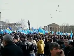 À la suite de la destitution du président ukrainien Viktor Ianoukovytch le 22 février 2014, diverses manifestations et contre-manifestations ont lieu en Crimée, notamment par des nationalistes russes anti-Maïdan demandant l'annexion de la péninsule par la Russie et par des Tatars de Crimée soutenant l'unité ukrainienne[45],[46], conduisant à une crise dans la région.