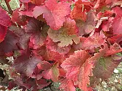 Les feuilles adultes sont orbiculaires, à cinq lobes, sinus pétiolaire peu ouvert ou à bords légèrement chevauchants, des sinus latéraux profonds, des dents courtes à profil convexes, un limbe tourmenté un peu gaufré et plissé près du point pétiolaire.