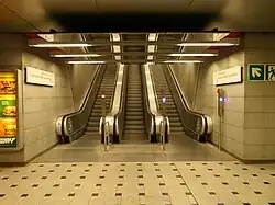 Elle dispose, d'un quai central encadré par les deux voies de la ligne U2. Établie à environ 24 mètres de profondeur, elle est parallèle à la gare U-Bahn située en surface, à laquelle elle est reliée par deux cheminements souterrains débutant dans les mezzanines est et ouest[3],[4].