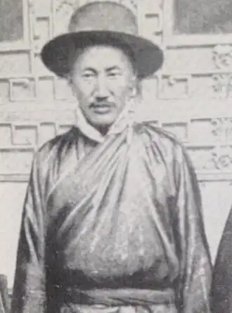 En 1903, il est général de la province de U (dbus mda' dpon), et est envoyé pour des négociations commerciales avec les Britanniques à la frontière de Chumbi/Dromo, avec Khendrung Lepar Lobzang Trinle (mkhan drung las par blo bzang 'phrin las). Les pourparlers échouent, mais il est nommé ministre du kashag, le conseil des ministres, la plus haute fonction après le dalaï-lama et le Premier ministre du gouvernement tibétain[1].
