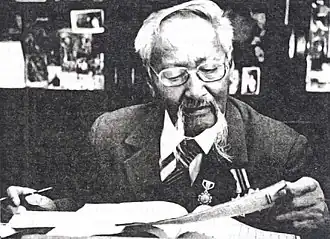Khatagin Tsendiin Damdinsüren (mongol cyrillique : Хатагин Цэндийн Дамдинсүрэн), né le dans l'aimag fr Setsen khan, situé en Mongolie-Extérieure, en Chine, sous la Dynastie Qing (actuel sum de Matad (mn), aimag de Dornod en Mongolie), et décédé le à Oulan-Bator, en République populaire de Mongolie, est un écrivain et linguiste mongol. Il a écrit les paroles de l'hymne national de la Mongolie[1]. Il a également retranscrit en mongol moderne, l'Histoire secrète des Mongols.