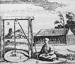 Des chrétiens, aussi bien japonais qu'occidentaux, sont soumis à la torture. Tandis que le torturé est suspendu par les pieds avec une corde, une de ses mains est tenue serrée avec une corde, mais une autre pend librement, de sorte que le torturé peut signaler qu'il est prêt à se rétracter.