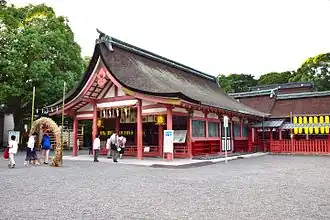 Ce sanctuaire est construit dans le style owari-zukuri dont il subsiste peu d'exemples.