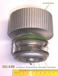 - ↑ (en) [PDF] Fiche technique du tube 8974/X-2159 (puissance de sortie 1,5 MW en régime linéaire), sur le site de CPI Communication & Power Industries – Eimac, cpii.com/eimac, consulté le 8 janvier 2008.