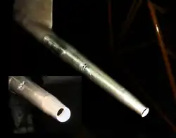 Cependant, si le premier trou, placé face au courant, captait bien la pression totale[5],[2], le deuxième trou (au bout du tube de verre non coudé) captait ’’à peu près’’ la pression statique locale. Plus exactement il la captait avec trop peu de précision (à cause du phénomène de ventilation de l’aval du prisme par son extrémité (voir l’article Ventilation de l'aval du cylindre).