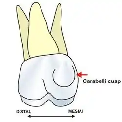 - ↑ (en) R Bhavyaa, P Sujitha, MS Muthu, M Kirthiga, « Prevalence of Cusp of Carabelli and its caries susceptibility – an ambidirectional cohort study », Australian Dental Journal, vol. 65, no 4, , p. 294-301 (DOI 10.1111/adj.12795).