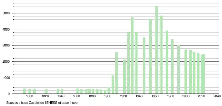 - ↑ Population municipale de référence en vigueur au 1er janvier 2025, millésimée 2022, définie dans les limites territoriales en vigueur au 1er janvier 2024, date de référence statistique : 1er janvier 2022.