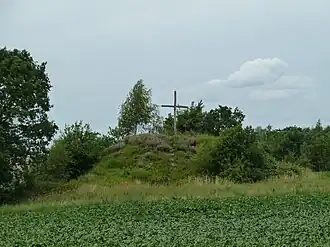 La butte est surmontée d'une croix de bois plantée par le curé Bauwens, abbé de la paroisse d'Emael. Le tumulus a été fouillé sans succès au début du XXe siècle[1].