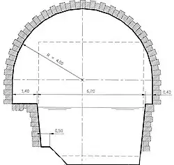 Les eaux d'infiltration, dont le cheminement fut facilité par un sol très mauvais (disloqué et fracturé) ont considérablement gêné les travaux, engendrant de nombreux éboulements et accidents. L'ouvrage terminé présente une maçonnerie d'un mètre quarante d’épaisseur moyenne pour la voûte et d'un peu moins d'un mètre pour les piédroits. Il fut réalisé une banquette formant chemin de halage [3] d'un mètre quarante et une banquette de service de 40 centimètres.La largeur du canal est de six mètres vingt.