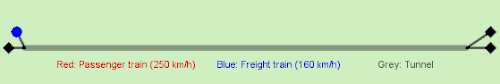 Il est prévu qu'environ 320 trains de marchandises et 80 trains de voyageurs circulant respectivement à 160 km/h et à 250 km/h puissent emprunter quotidiennement le tunnel[6]. La différence de vitesse entre les trains de marchandises et les trains de voyageurs détermine la capacité du tunnel[16]: