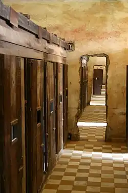 Au départ, Tuol Sleng est une école qui fut transformée par les forces de Pol Pot en prison et en centre de torture nommé « S-21 », la plus connue des quelque 196 prisons que la dictature des Khmers rouges avait disséminées à travers le Cambodge durant les années 1970[1]. Elle était dirigée par Kang Kek Ieu, alias « Douch », et elle dépendait directement des plus hauts dirigeants du régime. Environ 18 000 personnes y ont été détenues dans une « machine de mort », avec une « élimination systématique des prisonniers »[2].