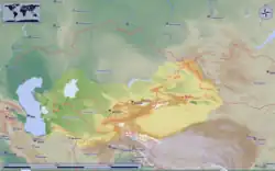 Le Turkestan[1],[2] (turc : Türkistan, littéralement le « Pays des Turcs ») est une région d'Asie centrale[1],[2],[3] située entre la mer Caspienne à l'ouest et le désert de Gobi à l'est[3]. Le Pamir et les monts Tian la divisent en Turkestan occidental[4], à l'ouest, et Turkestan oriental[5], à l'est[3]. Le premier correspond à l'ancien Turkestan russe[1] et couvre le sud du Kazakhstan, le Turkménistan, l'Ouzbékistan, le Tadjikistan, et le Kirghizistan[1],[3], le second correspond à l'ancien Turkestan chinois[1] et couvre le Xinjiang[1],[3]. Un Turkestan afghan est attesté[6].