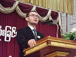 - ↑ (my) Thar Nge Lay, « တစ်ပြည်ထောင်စနစ်ဖြင့် အုပ်ချုပ်သွားမည်ဟု ဗို », MPA, (lire en ligne [archive du ], consulté le )