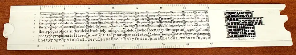 Dès 1897, l’Allemand A. W. Faber propose des règles coulissantes permettant aux typographes de mesurer et de calculer plus facilement leurs mises en page. De nombreux modèles seront en usage jusqu’à l’apparition du numérique et de l’informatique.