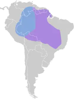 Le tyran à gorge blanche est un migrateur intracontinental. Il est résident de l'Est du bassin amazonien. Son aire de répartition s'étend vers l'est jusqu'au Cerrado (où il est un migrateur de passage dans la partie nord) et vers le nord jusqu'au bouclier guyanais, à l'exception de la région côtière (à l'est vers l'île de Marajó).