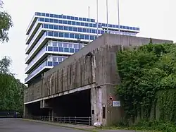 La capacité de charge de la structure massive du bunker est suffisante pour supporter une construction supplémentaire à son sommet. Une rampe d'accès pour les automobiles est construite sur le mur nord du bunker et des places de parking pour les employés de l'entreprise sont aménagées sur le revêtement non bâti du bunker. L'architecte Gerhard Müller-Menckens a réalisé le projet.