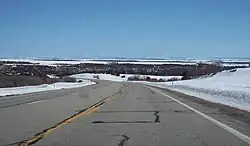 US 87 près de Moore. Les routes forment un multiplex jusqu'à Lewistown.