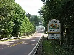 Il y a plusieurs ponts historiques le long de la National Road qui sont toujours présents près de la route actuelle de l'Alt US 40. Parmi eux, le pont de la rivière Casselman à Grantsville et le pont sur Braddock Run, un affluent de Wills Creek, à Clarysville. Le pont National Road original sur la rivière Casselman était un pont en arc en pierre construit en 1813[6] L'infrastructure large de 80 pieds (24,384 m) a été construite pour être le plus grand pont de ce type aux États-Unis à l'époque, et pendant sa construction, on pensait que le pont ne pouvait pas se tenir tout seul. Le pont a été construit de cette manière dans l'espoir que le canal de Chesapeake et de l'Ohio finissent par passer sous lui, bien que la construction du canal ait été arrêtée à Cumberland en 1850[16] Quand l'US 40 a été désigné pour la première fois en 1925, elle a traversé la rivière Casselman sur le pont de pierre d'origine. En 1933, un nouveau pont en acier a été construit pour remplacer le pont National Road, et c'est ce pont que l'Alt US 40 suit maintenant. Le pont d'origine a été déclaré monument historique national en 1964[17] et fait maintenant partie du parc d'État du pont de la rivière Casselman.