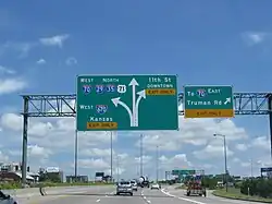 I-70 / I-670 / US 40 à Kansas City. L'I-70 / US 40 / US 71 forment un multiplex dans la ville.