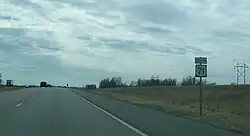 I-49 au sud de Pineville. Les routes forment un multiplex jusqu'à Kansas City.