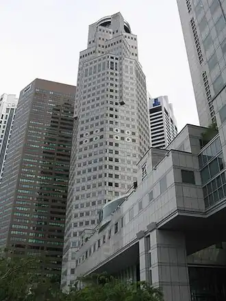 - Les 8 derniers étages en 1993 lors d'une rénovation-extension avec la réalisation de structures architecturale d'inspiration post-moderne assortis avec l'UOB Plaza One voisin.