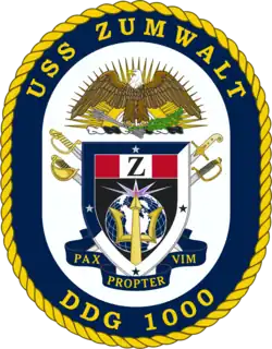 L'USS Zumwalt (DDG-1000) est un destroyer lance-missiles de la marine des États-Unis. Il est le premier navire de la classe Zumwalt et le premier navire à prendre le nom de l'amiral Elmo Zumwalt[4] (1920-2000). Entré en flotte le [5],[6], il est mis en service le mais une loi adoptée par le Congrès a peu de temps après interdit à la Marine d'accepter la livraison d'un navire qui n'était pas entièrement équipé de sa capacité de combat, cela a repoussé son acceptation officielle au [7].