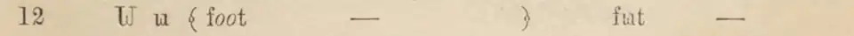 La lettre est aussi utilisée dans l’alphabet phonétique d’Edwin Leigh de 1866[2],[3], qui a été utilisé dans les écoles de Saint-Louis des années 1860 aux années 1880[4].