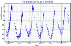 - 1 2 (en) V* U Ori -- Mira Variable sur la base de données Simbad du Centre de données astronomiques de Strasbourg.