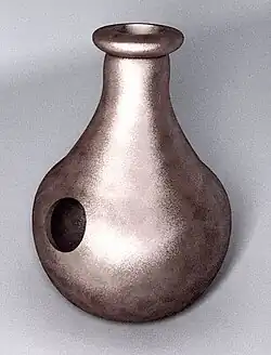 Il est façonné en terre cuite au tour ou par coulage, mais traditionnellement en colombin avec une ouverture classique en haut du goulot resserré, mais aussi une petite ouverture sur le côté. Il a en moyenne 40 cm de long pour 20 cm de diamètre.