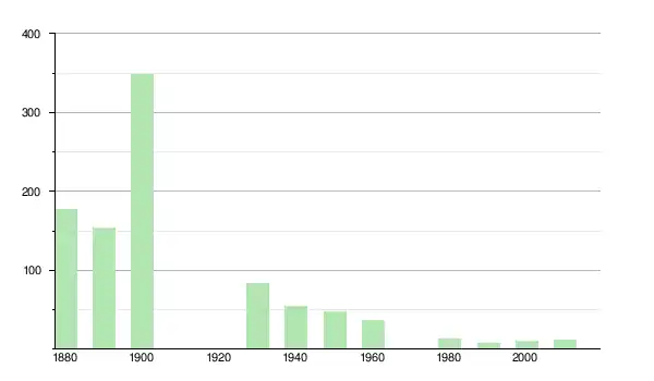 | 1890 | 154 | ▼ −12,99 % | |