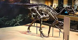 - ↑ Andrew Farke et Eunice Yip, « A juvenile cf. Edmontosaurus annectens (Ornithischia, Hadrosauridae) femur documents a poorly represented growth stage for this taxon », Vertebrate Anatomy Morphology Palaeontology, vol. 7, (ISSN 2292-1389, DOI 10.18435/vamp29347, lire en ligne, consulté le )