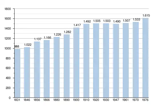 - Sources : INS, Rem. : 1831 jusqu'en 1970 = recensements, 1976 = nombre d'habitants au 31 décembre[2].