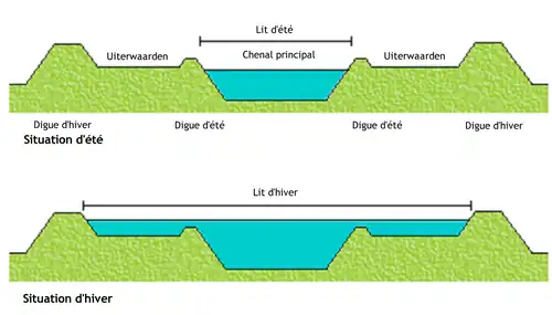 Un uiterwaard (également : uiterwaarde ou uiterdijk[1], pluriel : uiterwaarden) est un terme néerlandais utilisé en géomorphologie pour indiquer la zone inondable entre le lit d'été d'un fleuve ou d'une rivière (voire d'un ruisseau) et ses digues extérieures. Entre le lit d'été et ces uiterwaarden se trouve souvent une digue dite d'été. Pendant les saisons humides (essentiellement en hiver), les uiterwaarden peuvent s'inonder, de manière à agrandir le lit de la rivière et de diminuer le risque d'inondation des terres habitées.