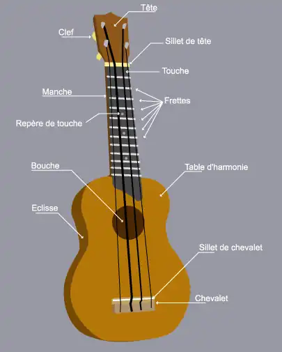 - ↑ Encore que la capacité acoustique d'un ukulélé de taille soprano à supporter une corde de sol plus grave que la corde de do soit parfois discutée.