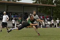 - ↑ (en) « Ultimate is a non-contact, self-refereed team sport played with a flying disc frisbee. », sur wfdf.sport, World Flying Disc Federation (consulté le ).